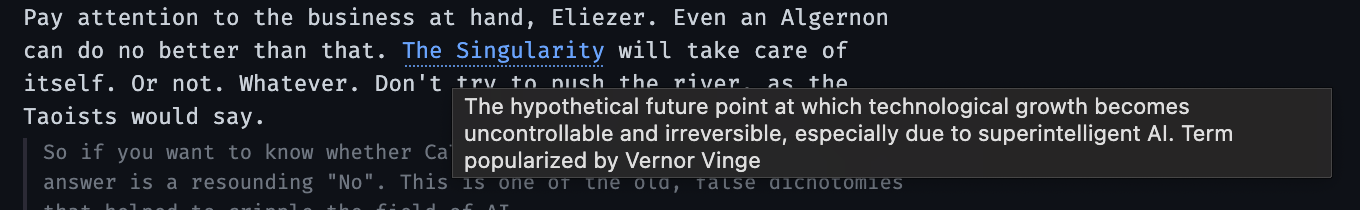 Which will give you definitions on hover for those words in the glossary: